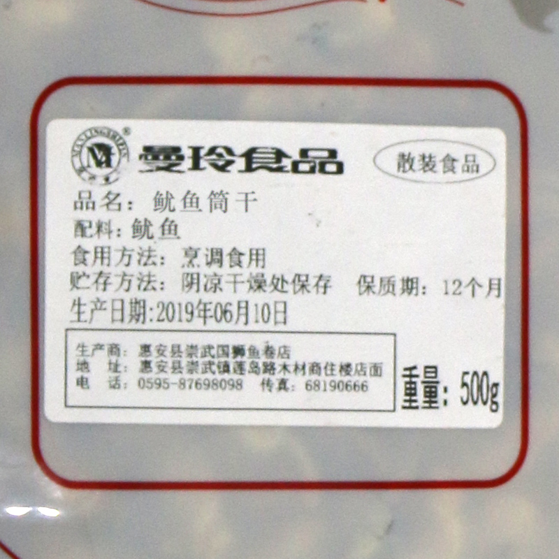 蛏干 500G